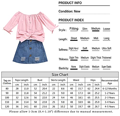 Edjude Set di Vestiti Bambine Ragazza Casual Elegante Estivo Camicie Abbottonate +Gonna di Jeans Strappati Rosa 2-3 Anni