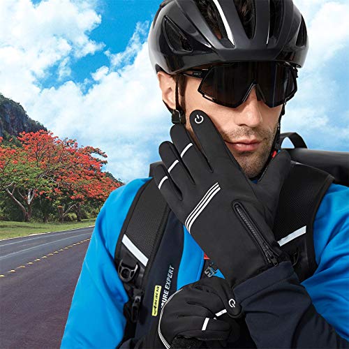 EDOTON Guanti Ciclismo Bici, Uomo Guanti Touchscreen Invernali Antivento Impermeabili Antiscivolo Riflettenti Termici per Bici Corsa Strada Moto Scooter (Nero, L)