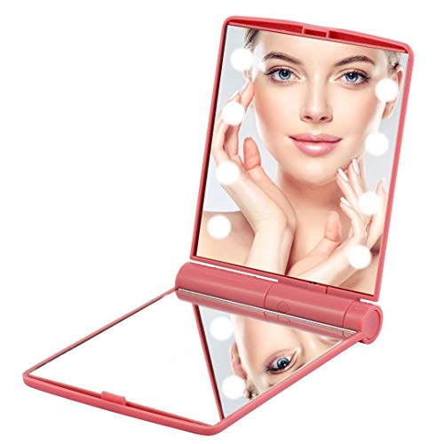 Edrus - Specchio portatile con ingrandimento touch screen 8 dimmerabile illuminato, specchio cosmetico da borsa, pieghevole, doubleface, specchio compatto