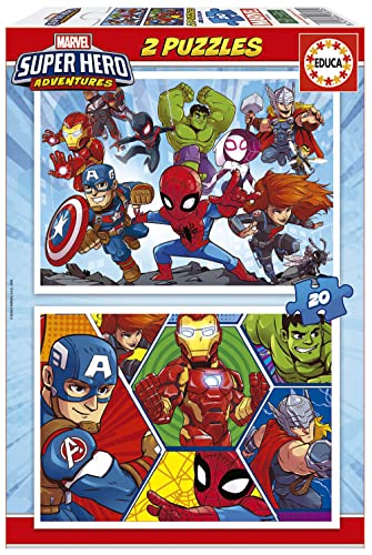 Educa- Marvel Super Heroe Adventures Puzzle 2 x 20 Pezzi, Multicolore, 18648