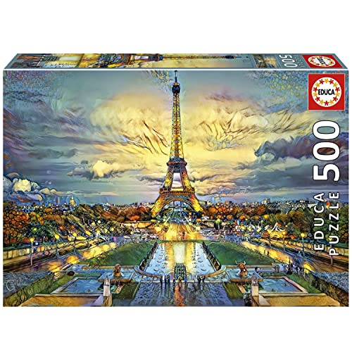 Educa - Torre Eiffel | Puzzle da 500 pezzi. Misura: 48 x 34 cm. Include colla FIX puzzle. Da 11 anni (19621)