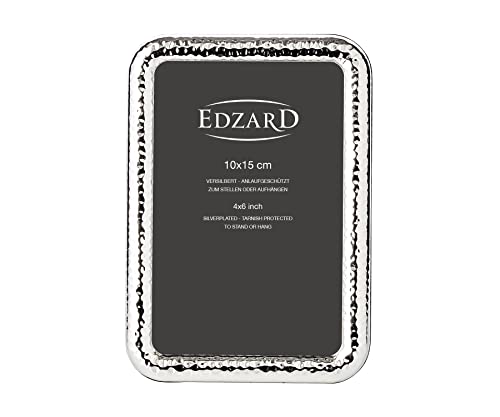 EDZARD Cornice per foto Amalfi (10x15 cm), placcata argento - Cornice per foto in argento, resistente all'appannamento, con 2 appendini