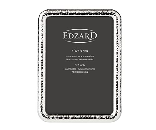 EDZARD Cornice per foto Amalfi (13x18 cm), in look martellato, placcata in argento pregiato, protetta dall'ossidazione, con 2 appendini - per stare in piedi e appendere
