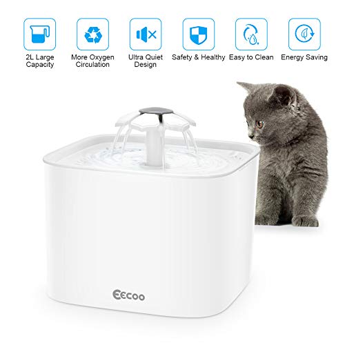 Eecoo Fontanella per Gatti Fontana per Gatti Distributore Automatico d'Acqua con 2L Grande capacità 3 Livelli di Filtraggio 2 Uscite Automatiche e Ultra Silenzioso