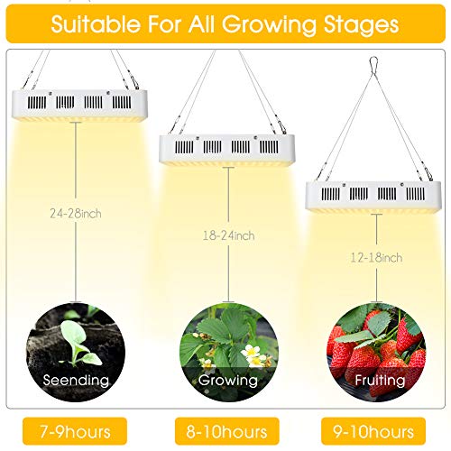 【Design ad alta efficienza e dissipazione del calore scientifico】- La lampada da coltivazione è stata realizzata in metallo a conduzione termica veloce, uno dei migliori materiali conduttivi termici. Il piccolo foro nella parte posteriore e il design a 2 ventole aumentano l'area di dissipazione del calore che può prolungare la vita della luce di crescita. 120 chip LED senza decadimento luminoso per 18 mesi assicurano.