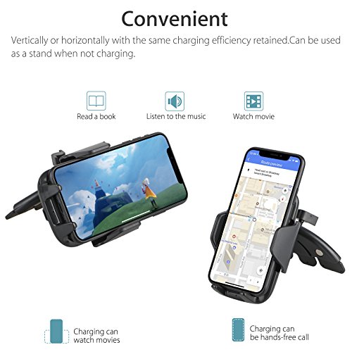 EEEKit Qi Caricabatteria da Auto per Auto CD, Supporto per Telefono, Caricatore rapido per Samsung Galaxy S9 / S9 Plus / S8, Nota 8, Carica Standard per iPhone X, 8/8 Plus e dispositivi abilitati Qi