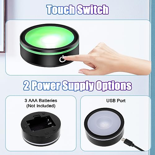 OPZIONI DI VISUALIZZAZIONE VERSATILI: Riceverete due basi luminose a LED progettate per diverse opere d'arte in cristallo: una con una superficie piatta per i pezzi rettangolari e l'altra con una superficie scanalata su misura per i cristalli sferici. Dimensioni (LxLxA): 2,64x2,64x1,18in/6,7x6,7x3cm. Una delle basi ha una scanalatura di 3,5 cm di diametro.