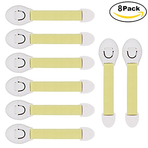 EEFUN Bambino Chiusure di Sicurezza Armadio,Fascia Morbida Serrature di Sicurezza per Bambini e Pets Blocchi di Sicurezza con Resistenti Adesivi per Gabinetto,Porta, Cassetti e Ante (8 pizze)