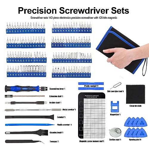 EFaith Set cacciaviti 142 pezzi con magnetico 120 bit Set di cacciaviti precisione per la riparazione di elettronica, iPhone, laptop, piccoli elettrodomestici, PC, telefoni cellulari, PS4, Xbox