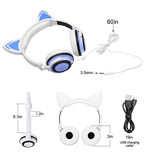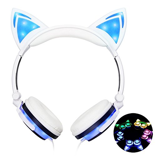 Efanr Cat cuffie auricolari bambini, LED light up pieghevole Wired Gaming Headset sopra l' orecchio lampeggiante incandescente Cosplay Fancy auricolare con flash LED per ragazze, ragazzi