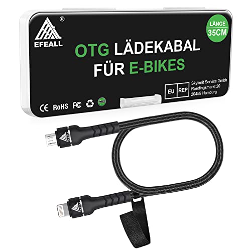 Cavo di ricarica EFEALL EBike per iPhone: cavo di ricarica EFEALL EBike per Lightning supporta la funzione OTG, compatibile con Bosch Intuvia, Kiox, Nyon (vecchio). Con il cavo di ricarica per computer da bicicletta per iPhone è possibile ricaricare il telefono tramite il computer e-bike. Viene fornito con nastro magico per una facile conservazione. Materiale impermeabile, ideale per l'uso in sport all'aria aperta come fuoristrada, ciclismo, ecc.