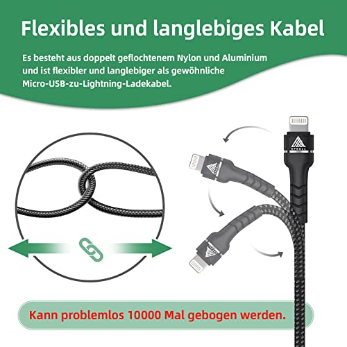 Cavo di ricarica flessibile e durevole: il cavo di ricarica EBike per iPhone Lightning è realizzato in nylon a doppio intreccio e alluminio. Flessibile e può essere piegato facilmente 10.000 volte, più durevole rispetto ai normali cavi di ricarica per e-bike compatibili con iPhone. Il cavo lungo 35 cm ha la lunghezza giusta, senza dover avvolgere il cavo più volte intorno al manubrio.