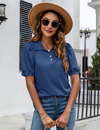 EFFAN Tshirt Donna Manica Corta Maglietta Elegante Bluse Maniche Corte Polo T-Shirt Tinta Unita Top Camicetta con Scollo a V Blu S