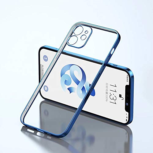 Effcotuo Custodia Compatibile per iPhone 12 PRO Max 6,7" Cover con Fotocamera Posteriore Pellicola Vetro Temperato Placcatura Cover Trasparente Protettiva in Silicone TPU Custodia - Blu Pacifico
