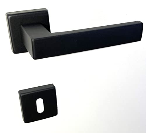 Effedielle MANIGLIA PER PORTA IN MARITECH, COMPLETA PER UNA PORTA DENTRO+FUORI, ROSETTA QUADRA mm45X45 CON MOLLA DI RITORNO (QUADRA FORO PATENT, Moderno, NERO OPACO)