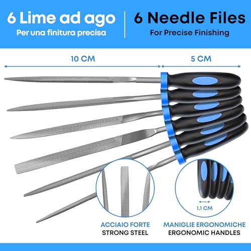 EFFEKTWERK Set di lime ad ago - 6 pezzi - mini set di lime per legno metallo plastica - set di lime piccole