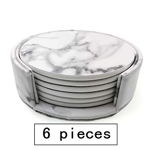 JZK 6 x Effetto Marmo Eleganti Bianchi sottobicchieri in Pelle con Supporto, Set sottobicchieri Rotondi da 9.7 cm per Tazza Bicchiere Boccale