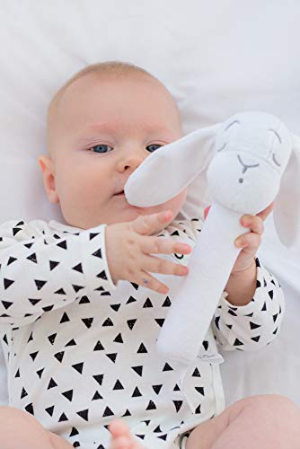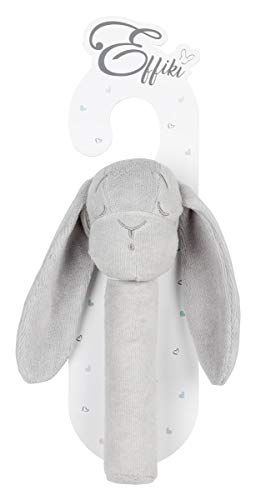 Effiki Sonaglio a forma di coniglio in tessuto con sonaglio, per neonati e bambini a partire da 0 mesi - Dimensione: 30 cm (coniglietto - grigio)
