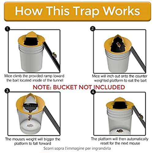 Tutto quello che devi fare è allacciarlo in un secchio da 5 galloni di dimensioni standard (il secchio da 5 galloni non è incluso), quindi catturare il mouse con uno sbattere, e non devi occuparti delle trappole monouso più. Queste trappole sono generalmente inefficaci e antigieniche.