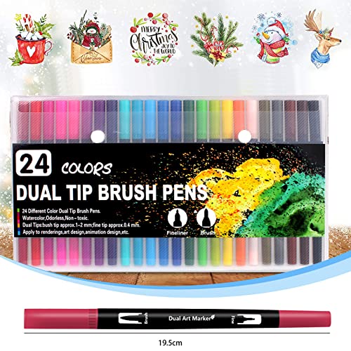 Efimeso Pennarelli Punta Fine 24 Colori Pennarelli con Punta in Feltro Fineliner Pennarelli ad Acquerello per Bambini Adulti Colorazione, Schizzi, Pittura, Disegno,con 4 Modelli,Brush Pen Lettering