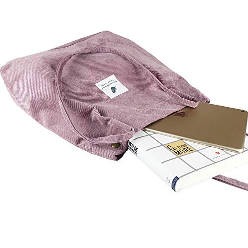 Eflying Lion Borsa a tracolla in velluto a coste, shopping bag, borse casual retrò, borsa da donna, borsa a spalla da donna (light purple)