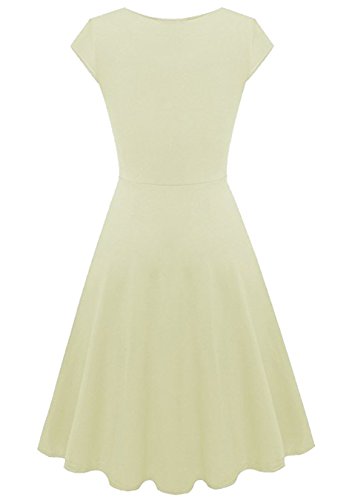 Design: Abito Pieghe Maniche Corte che avvolgono le spalle. Questo abito svasato con scollo a V retrò casual elegante abito a trapezio estivo portafoglio al ginocchio stile Audrey Hepburn sera swing ti rende elegante e luminoso quando lo indossi.