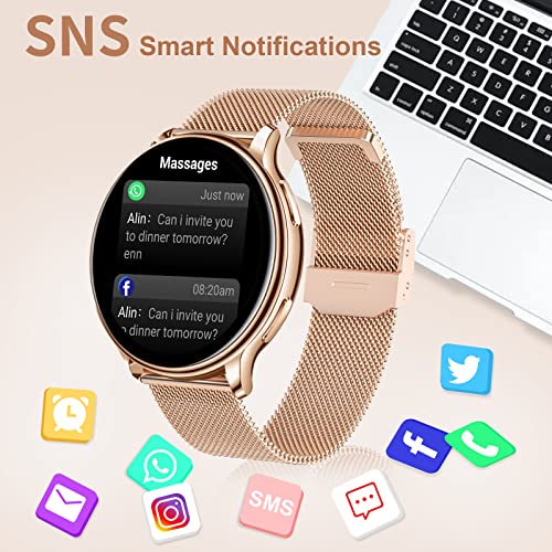 Efolen Smartwatch Chiamate Smart Watch Donna con SpO2 Pressione Sanguigna Cronometro per Android iOS, Oro Rosa