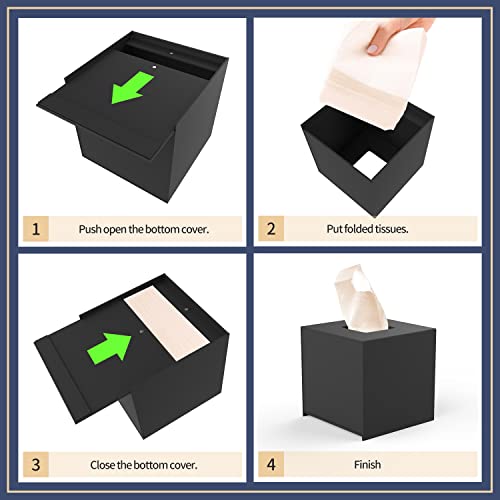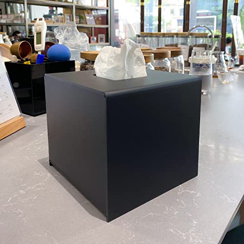 EFUTURETIME Scatola per fazzoletti in acrilico, tessuto dispenser quadrato, 14 x 14 x 14 cm, base magnetica, dispenser salviettine con portello scorrevole per casa, ufficio, hotel, nero opaco