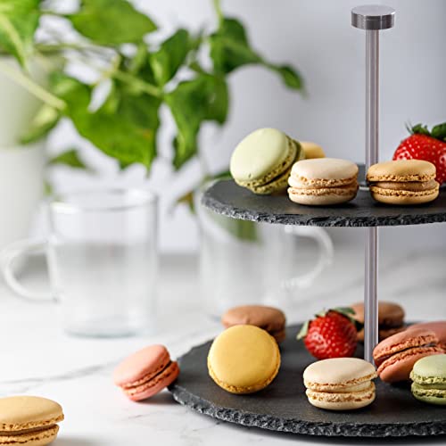 EGenuss Alzata per dolci a 2 piani in ardesia | Inclusi spugna e gessetto | Piatti rotondi