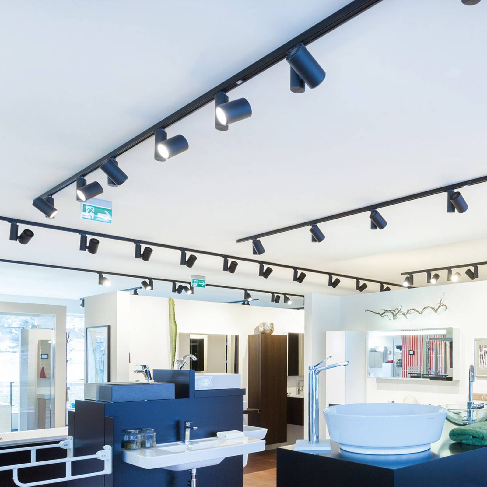 Faretto a binario flessibile Kent trifase con efficiente tecnologia di illuminazione a LED e alto indice di resa cromatica Questo faretto a binario a LED è ideale per illuminare negozi o aree di vendita di qualsiasi tipo, perché il suo alto indice di resa cromatica >90 gli permette di riprodurre i colori in modo particolarmente realistico e attraente. Il faretto cilindrico in alluminio pressofuso può essere ruotato e orientato per illuminare un'area specifica. Il design è moderno e senza tempo. Dati tecnici - incl. driver LED - Angolo del fascio: 38 - può essere ruotato di 350° e inclinato di 2 x 90 - Adattatore universale trifase incluso
