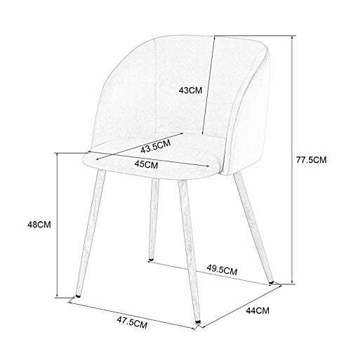 EGGREE Sedia di Velluto con la Gamba in Acciaio Solido e Velluto Tessuto Sostegno per la Schiena, Poltroncina Lounge per Salotto o Sala da Pranzo - Grigio