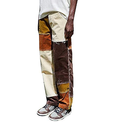 Eghunooze - Jeans da uomo, a vita alta, patchwork, stile hip-hop, pantaloni da skate, pantaloni larghi a gamba larga Giallo M