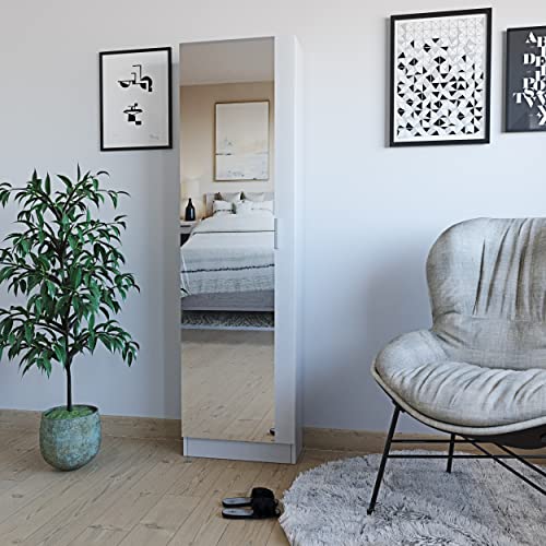 EGLEMTEK Mobile Tarnow Armadio Portascarpe Con Specchio Scarpiera Salvaspazio Colonna Salotto Ingresso Bagno 180 x 50 x 20 cm Colore Bianco