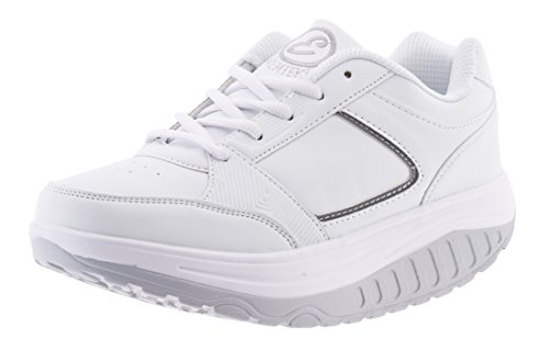 EGLEMTEK Scarpe Uomo Benessere Dimagranti Sportive Fitness BASCULAN TM (Bianco Grigio, 44)