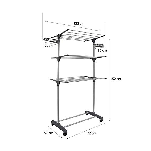 EGLEMTEK Stendibiancheria da Pavimento, Stendino a Torre, Verticale, Spazio di Stenditura 15 m, con Ruote, 152 x 72 x 57 cm (Colore Grigio)