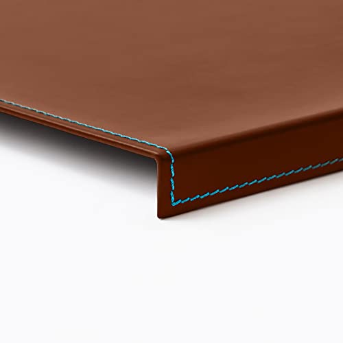 Eglooh - Calliope Deluxe - Sottomano da Scrivania Ufficio in Cuoio Marrone Naturale 70x50 - Struttura in Acciaio con Profilo a L, Cuciture Blu Azzurre e Fondo Antiscivolo - Made in Italy