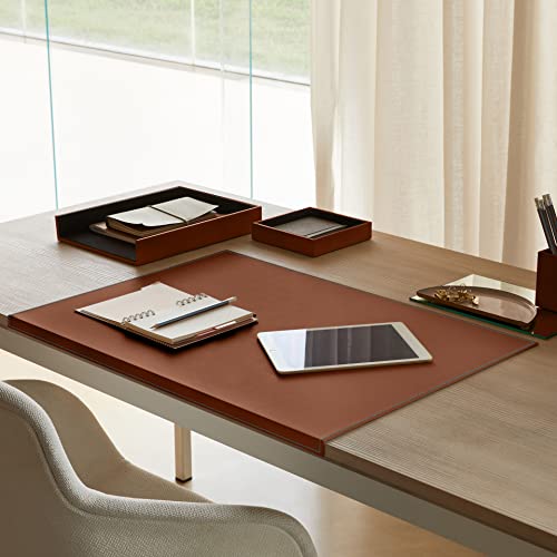 Sottomano per scrivania e ufficio realizzato in rigenerato di cuoio e prodotto in Italia da un'azienda artigiana che ne cura ogni fase produttiva, dal taglio del cuoio al confezionamento finale.