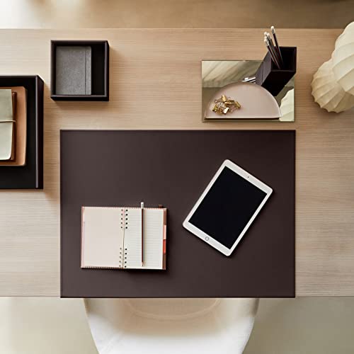 Eglooh - Calliope - Sottomano Scrivania Ufficio in Cuoio Marrone Scuro cm 50x35 - Struttura in Acciaio con Profilo a L, Raffinate Cuciture Artigianali e Fondo Antiscivolo - Made in Italy