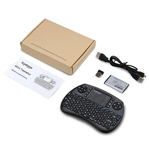 EgoIggo Mini tastiera wireless a 2,4 GHz con mouse, touchpad e batteria ricaricabile per Smart TV, TV Box Android, PC, Mini PC, laptop QWERTZ