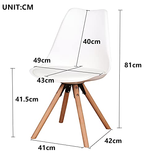 EGOONM Sedie Stile Nordico Set di 4, Sedie da pranzo Sedie con Cuscini e Gambe in Faggio, Adatto per soggiorno cucina e balcone (Bianco-4)