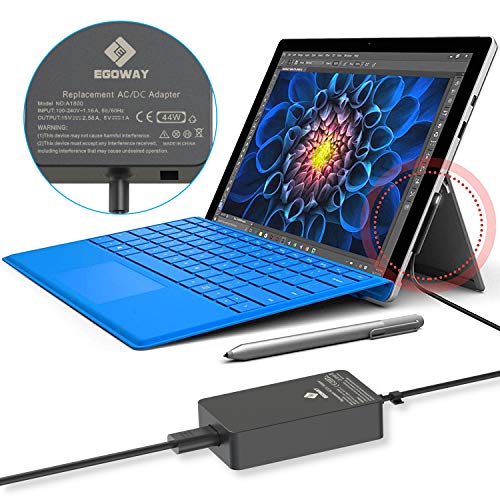 E EGOWAY 44W 15V 2.58A Alimentatore Caricatore per Surface Pro X Pro 7 Pro 6 Pro 5 Surface Laptop 3 2 1 Surface Go Surface Book