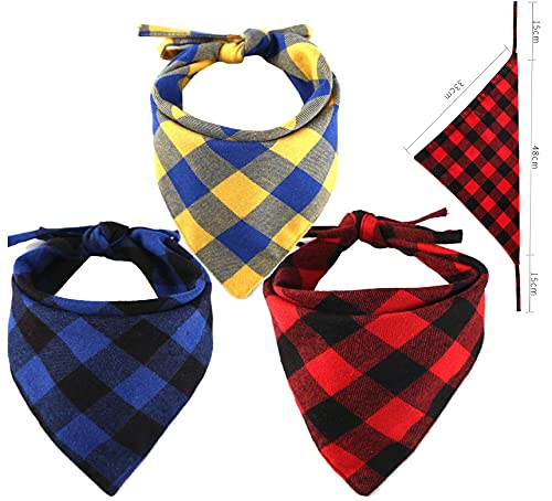 Egurs 3 Pack Bandane per Cani Pet Scarf Plaid Triangle Bavaglini Sciarpa Accessori per Cani Gatti Animali Animali Rosso Blu Giallo Rosso Blu Giallo