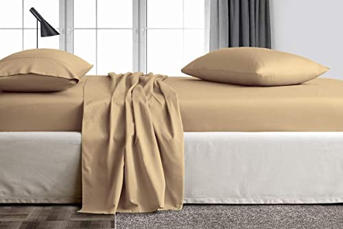 100% Egyptian Cotton Sheet set 600 Thread Count, Hotel Luxury 4 Piece Sheet Set Sateen Weave, 40cm Elasticized Deep Pocket Taupe Solid Single Size