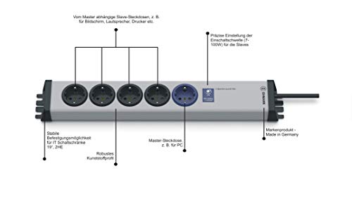 Ehmann 0214x00058341 IT-Master/Slave-PRO-Ciabatta elettrica a 5 Prese, Cavo 1,5 m
