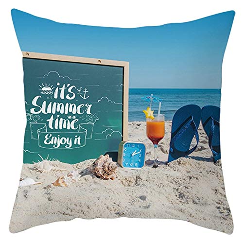 EHOMERY Federe per Cuscini Arredo Copricuscino Poltrona 1 Posto Beach Conch Clock Drink Shoes Velluto Copricuscini Copricuscini Divano Elasticizzato Fantasia Esterno Blu Marrone 20X20 Inches