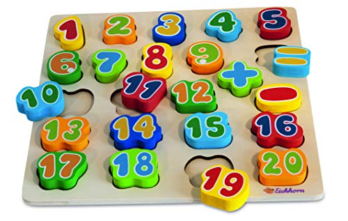 Per imparare i primi numeri: sulla tavola di legno sono posizionati numeri colorati da 1 a 20 e tre simboli (Plus, Minus e identico caratteri), che possono essere rimossi e riposti ai bambini nel posto giusto, allo stesso tempo imparano i primi numeri