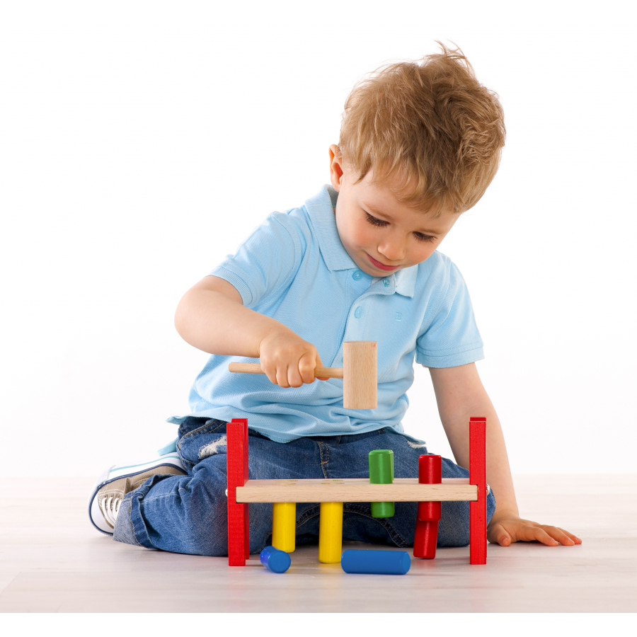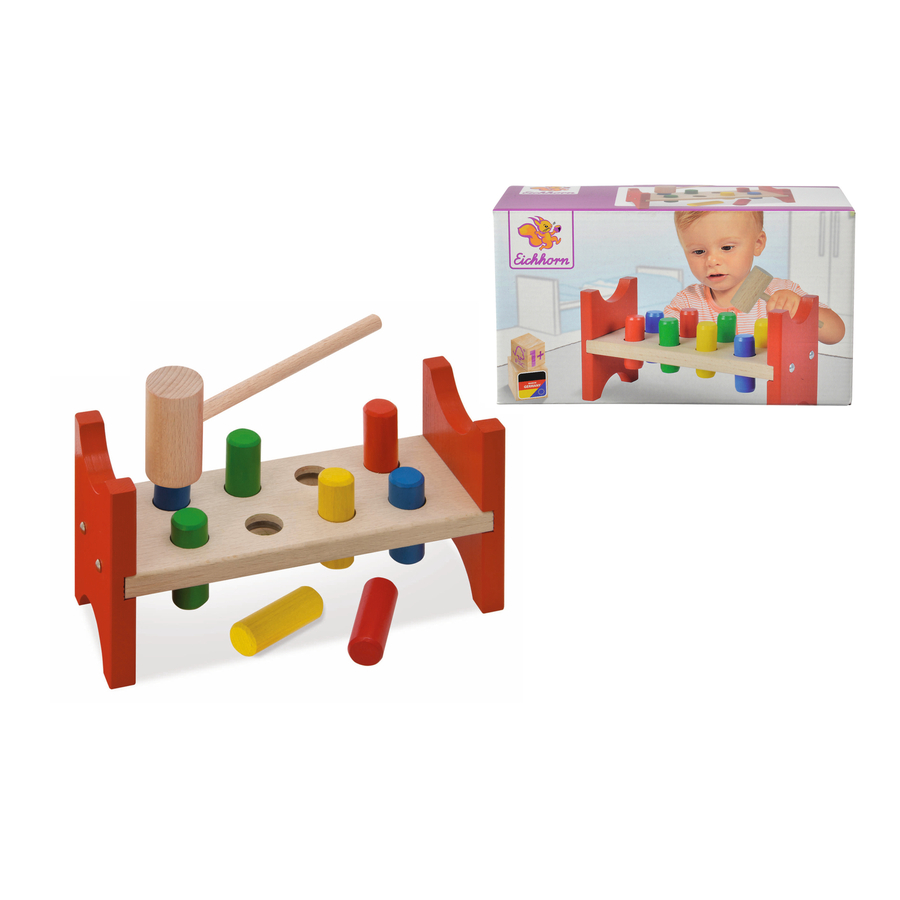Gli 8 perni colorati devono essere battuti con un martello attraverso i fori del banco Heros. Il gioco promuove le capacità motorie Dettagli: Parti: 10 Materiale: legno di faggio Dimensioni: 9 x 23,5 x 13,5 cm Età: da 12 mesi