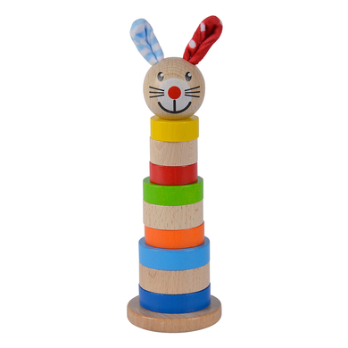 Dettagli del prodotto: Età: da 12 mesi Torre impilabile da 11 pezzi con piastra di base, dischi e testa di coniglietto Dimensioni e peso: Dimensioni da montato (altezza): 20 cm peso: 0,32 kg Materiale e cura: Materiale: FSC® 100% legno di faggio, peluche.