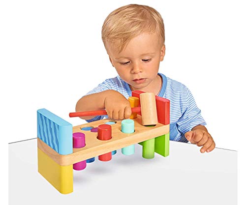 Eichhorn- Wooden Hammer & Peg Colourful Pounding Bench Toy with 8 Pegs & Mallet | Suitable for Ages 1 Plus Banchetto con Martello, Multicolore, 195026