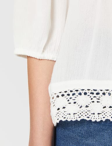 Eight2Nine Damen Bluse Carmen-Ausschnitt mit Spitze Camicia da Donna, Bianco